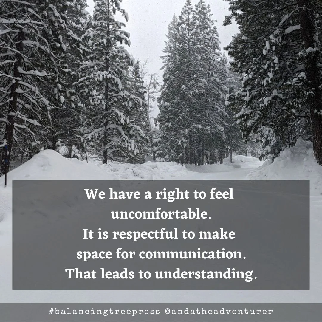 It is okay to feel uncomfortable. It is our right to voice that so that we can be authentic in our communication. It is respectful to acknowledge discomfort so it can be addressed before moving forward.